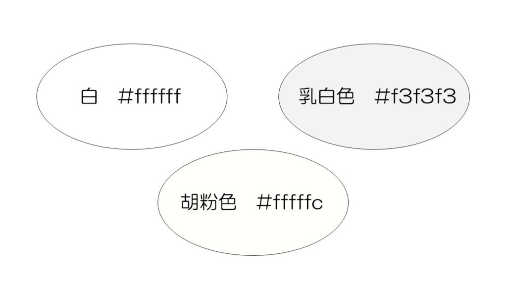 右上の乳白色は、画像では灰色がかった色を使用していますが、黄や赤みがかった白も乳白色と呼ぶことがあります。